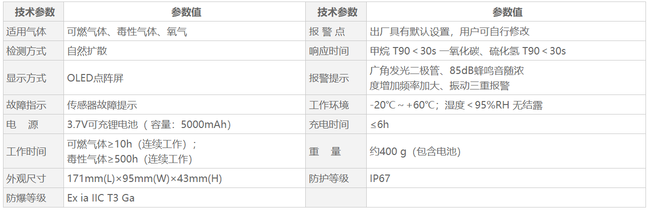 檢測報警儀外殼采用高強度工程材料、復合彈性橡膠的雙色材料精制而成,強度高、手感好,并且防水、防塵、防爆。